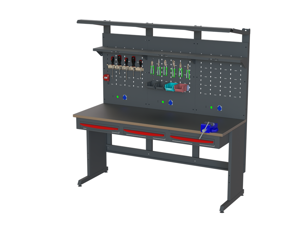 • سطح عمل من الفولاذ المقاوم للصدأ، وجزء داخلي من الخشب الأحمر